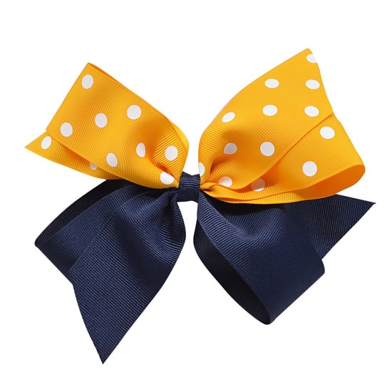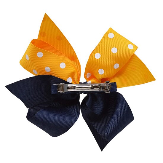 West Virginia Half n Half Bow Navy Solid Yellow Polkadot Barrette
