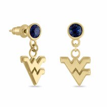 WVU Flying WV Logo Gold Plated Crystal Drop Earrings